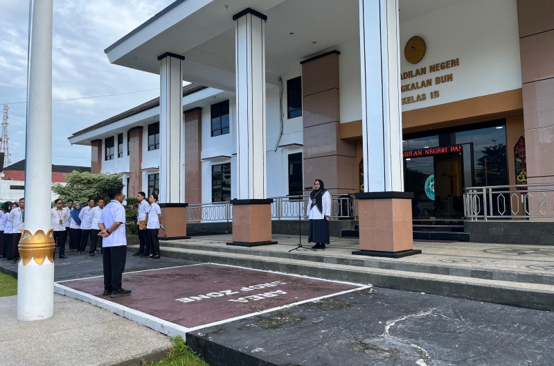Pengadilan Negeri Pangkalan Bun melaksanakan kegiatan apel pagi sebagai bagian dari upaya pembinaan kedisiplinan, peningkatan integritas, serta penguatan semangat kerja seluruh aparatur peradilan. Apel pagi ini dipimpin oleh Ketua Pengadilan Negeri Pangkalan Bun, Ibu Ikha Tina, S.H., M.Hum.