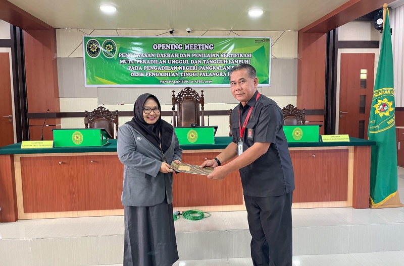 Pengadilan Negeri Pangkalan Bun melaksanakan kegiatan Opening Meeting Pengawasan Daerah dan Penilaian Sertifikasi Mutu Peradilan Unggul dan Tangguh (AMPUH) yang dilaksanakan oleh Pengadilan Tinggi Palangkaraya.