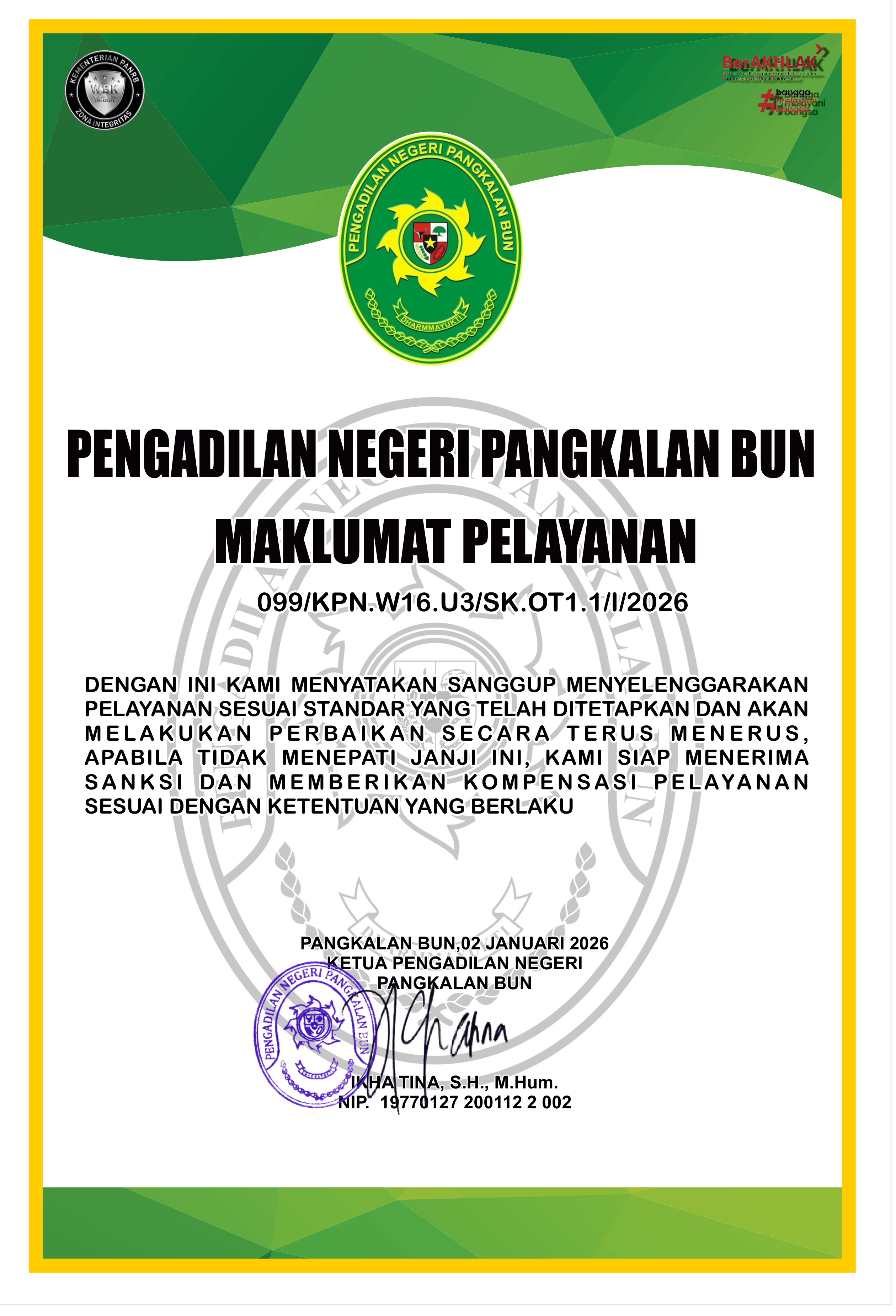 MAKLUMAT PELAYANAN PENGADILAN NEGERI PANGKALAN BUN